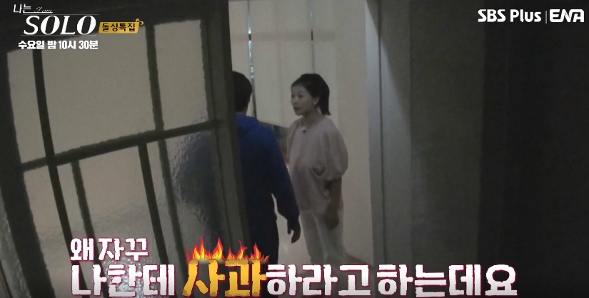 오해를 받은 옥순이 웃으며 나한테 사과해야지 했습니다. 오해했으니 사과 하는 거 너무 당연한 거 아닌가요? 하지만 자기는 언니 이름을 들었기 때문이었다지만 사과하는 태도가 본인은 억울하다는 듯 합니다. 옥순도 장난처럼 얘기한거였지만 기분이 좋지 않아 맞대응 하기 시작합니다.
