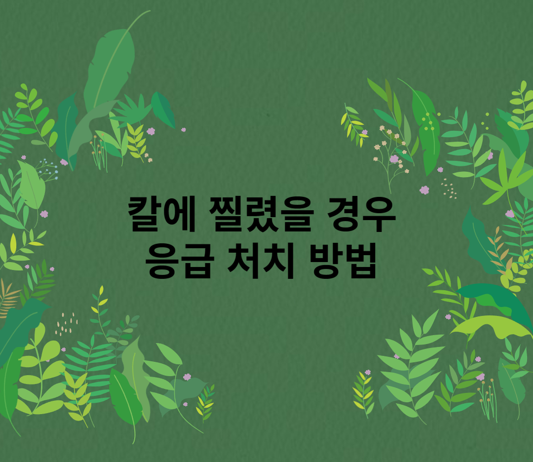 - 칼이 박혀 있는 경우: 만약 칼이 박혀 있는 상태라면 그대로 두는 것이 좋습니다. 칼이 혈관을 막고 있을 수도 있기 때문입니다. 칼을 강제로 제거하거나 압박하면 출혈량이 증가하여 상황을 악화시킬 수 있습니다.