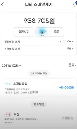 전환 버튼을 클릭합니다. 마이페이지나 포인트 관리 섹션에서 스마일캐시 잔액을 확인할 수 있습니다.