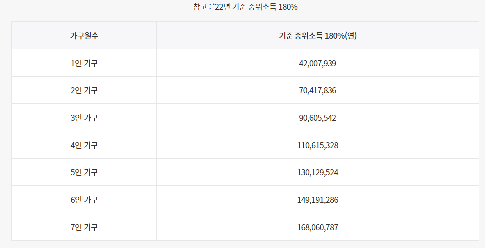 - 가구 소득 중위 180% 이하